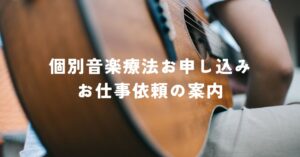 これまで、音楽療法・リトミック講師として活躍してきた私柳川による、音楽療法に関するサービスのご案内です。 Contents 川崎市内で実施する発達障害などの児童対象の個別音楽療法施設での音楽療法オンライン音 … 続きを読む 個別音楽療法お申し込み、お仕事依頼の案内